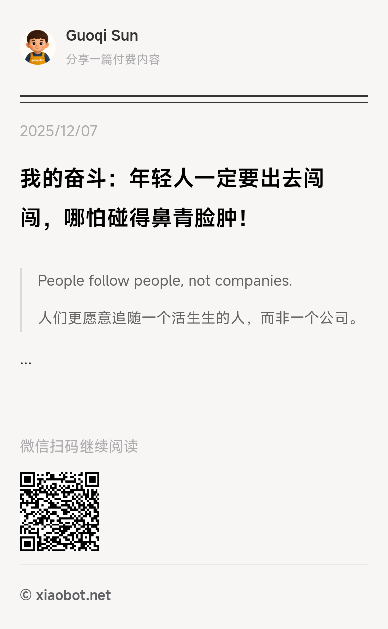 欢迎大家关注我的微信公众号「Guoqi Sun」,订阅《我的奋斗》内容专栏。
